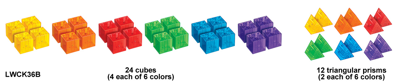 Regular-Triangular Prisms: Red 2pcs, Orange 2pcs, Yellow 2pcs, Green 2pcs, Blue 2pcs, Purple 2pcs |